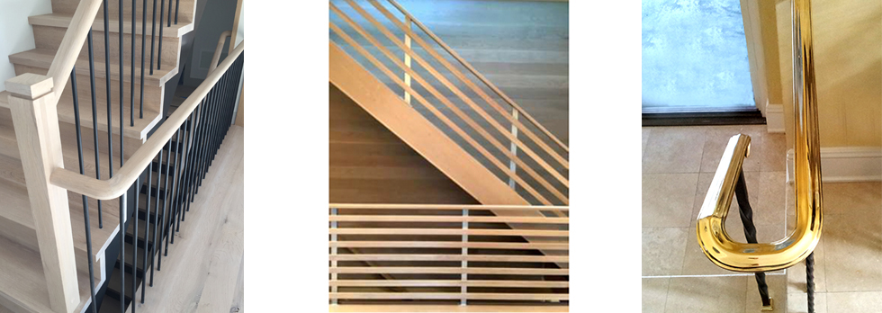 Stainless steel, aluminum, brass, steel - usually powder coated, glass, cable and various wood
